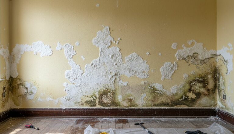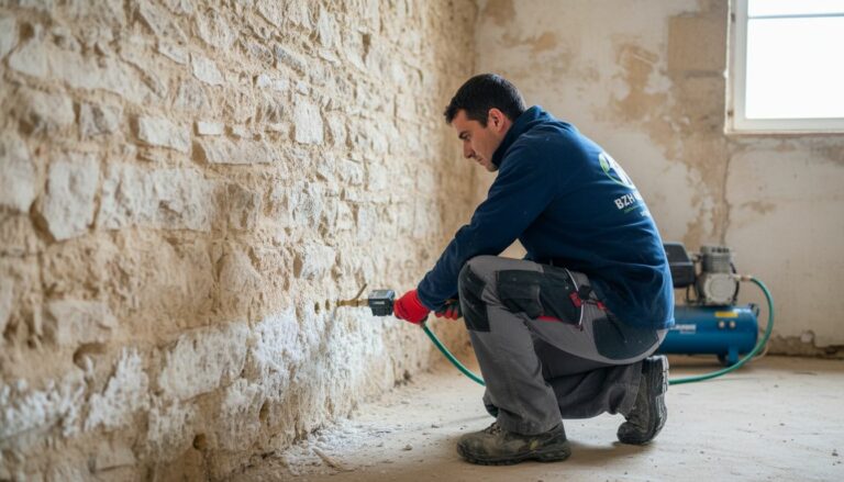 L’apparition de salpêtre (nitrate de potassium) sur les parois d’un bâtiment indique la migration d’eau minéralisée. Ce phénomène ne se limite pas aux murs, il affecte dalles, sous-sols et doublages. Le salpêtre dégrade les matériaux par cristallisation expansive et maintient une humidité constante en captant la vapeur d’eau ambiante (hygroscopicité).